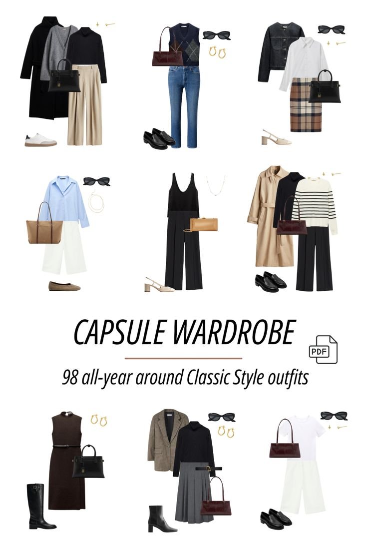 Classic Style Capsule Wardrobe, 98 Year-Round Pre-Styled Outfits, Chic Looks,